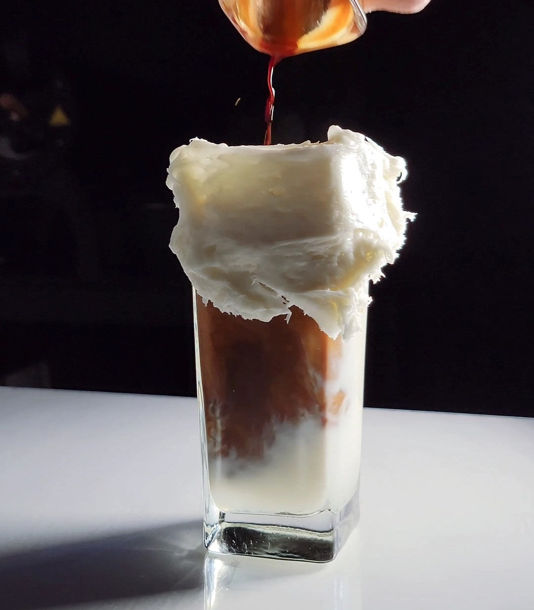5. In a separate glass make vanilla sweet cream -3 Tbsp. Heavy cream -1 Tbsp. Whole milk -1 Tbsp. vanilla syrup, mix together